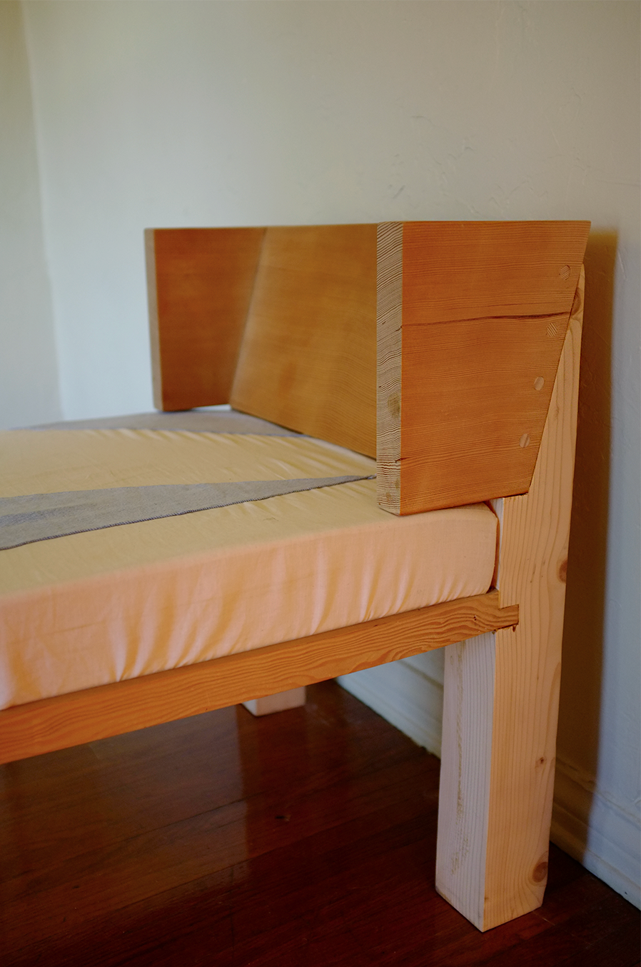 Rooted in the materiality that forms the structure, we used found and reclaimed wood. The cushion is made from patches of Ella’s favorite jeans from high school and a ream of linen that Tessa has been making clothing with for years. Patched and stitched together, the chair reflects the patchwork, improvisation, and sharing that comes with being a part of a sisterhood. Us sisters have always had a particular interest in furniture design and sculptural functionality, we are excited to be at the beginning of many more creative endeavors.